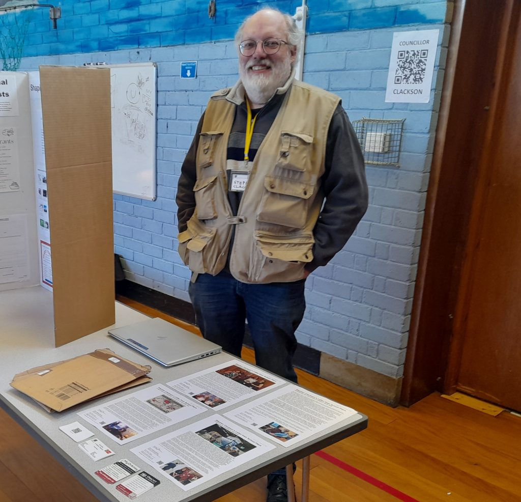 I was invited to Shapinsay’s “Community Get-Involved Day” at which residents and guests worked on the island’s Local Place Plan and contributed through workshops their ideas on social life, community, regeneration, local economy, housing, future sustainability, community facilities, and recreation.  These workshops gave me the opportunity to learn more about the needs and aspirations of the islanders and to proffer some of the knowledge and experience I have of other island communities in the North Isles ward.  There were stands set up in the school hall for drop-in sessions, and Shapinsay Community Council kindly allowed me a corner of their table for one of my own (see the photograph below), where I was able to converse with ward constituents on matters concerning them, pass on my contact details, hand out “MyOrkney” cards, and distribute copies of my Letter from School Place.