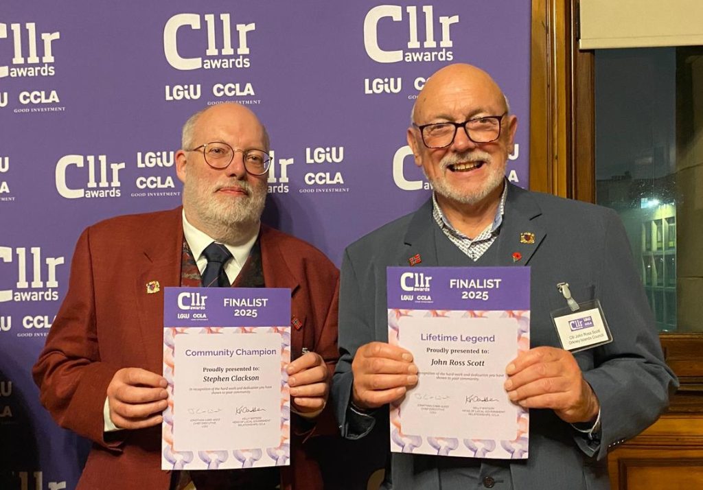 Sadly, neither Cllr Scott (shortlisted “Lifetime Legend”) nor I brought back trophies from the LGiU/CCLA Councillor Awards ceremony held on 5th November at the City Chambers in Glasgow, nevertheless, by way of consolation, we did each receive a finalist’s certificate (see photo below) in recognition of our being shortlisted. I was informed that the “Community Champion” category, for which I had been shortlisted, is always the most popular and that this year they had a great many nominees to draw up the shortlist of four from, so I needn’t feel too disheartened. This year’s winner in this category was Cllr Jan Brown of Argyll & Bute Council. I congratulated her and mutually commiserated with Cllrs Lois Speed (Angus) and Duncan Cumming (East Dunbartonshire), the other two contenders in this category. One of the great benefits of attending the event was getting the chance to speak to top councillors from other areas and find out what they are doing for their communities. I wish OIC councillors in general had more opportunity for such interactions. Sometimes I feel OIC can be a bit insular, which, even though we are an islands council, we don’t need to be. A photograph of the Clackson contingent at the ceremony is shown above. Some of the other contestants not only had family and friends with them (like Cllr Scott and I did) but were also supported at the ceremony by fellow councillors and officers from their respective local authorities. More photographs from the Councillor Award ceremony can be found at https://lgiu.org/events/cllr-awards/cllr-awards-2025-the-winners-scotland/